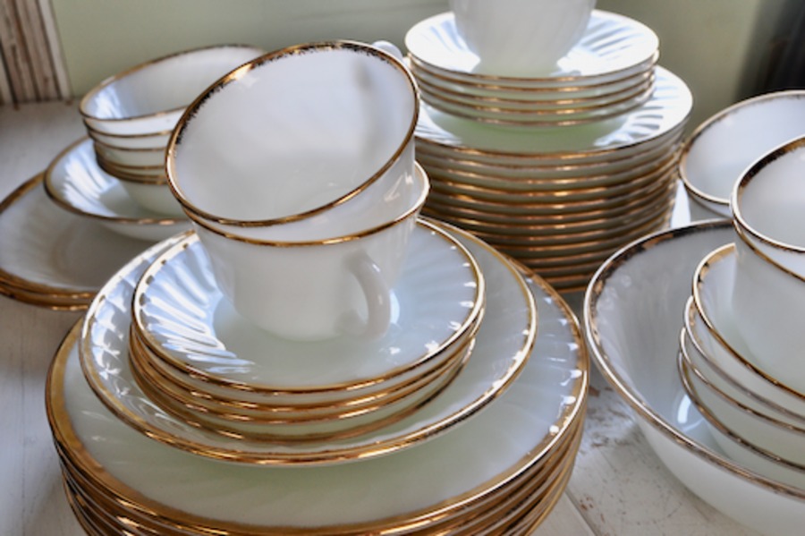 「ファイヤーキング」は1941~86年に米国アンカーホッキング社が製造したオーブン耐熱ガラス製食器のシリーズブランド名で、現在は生産されていません(他社製のライセンス品除く)。ぼってりとした形と「ミルクガラス」と呼ばれる色が特徴で、代表色は翡翠色をしたジェダイカラーです。