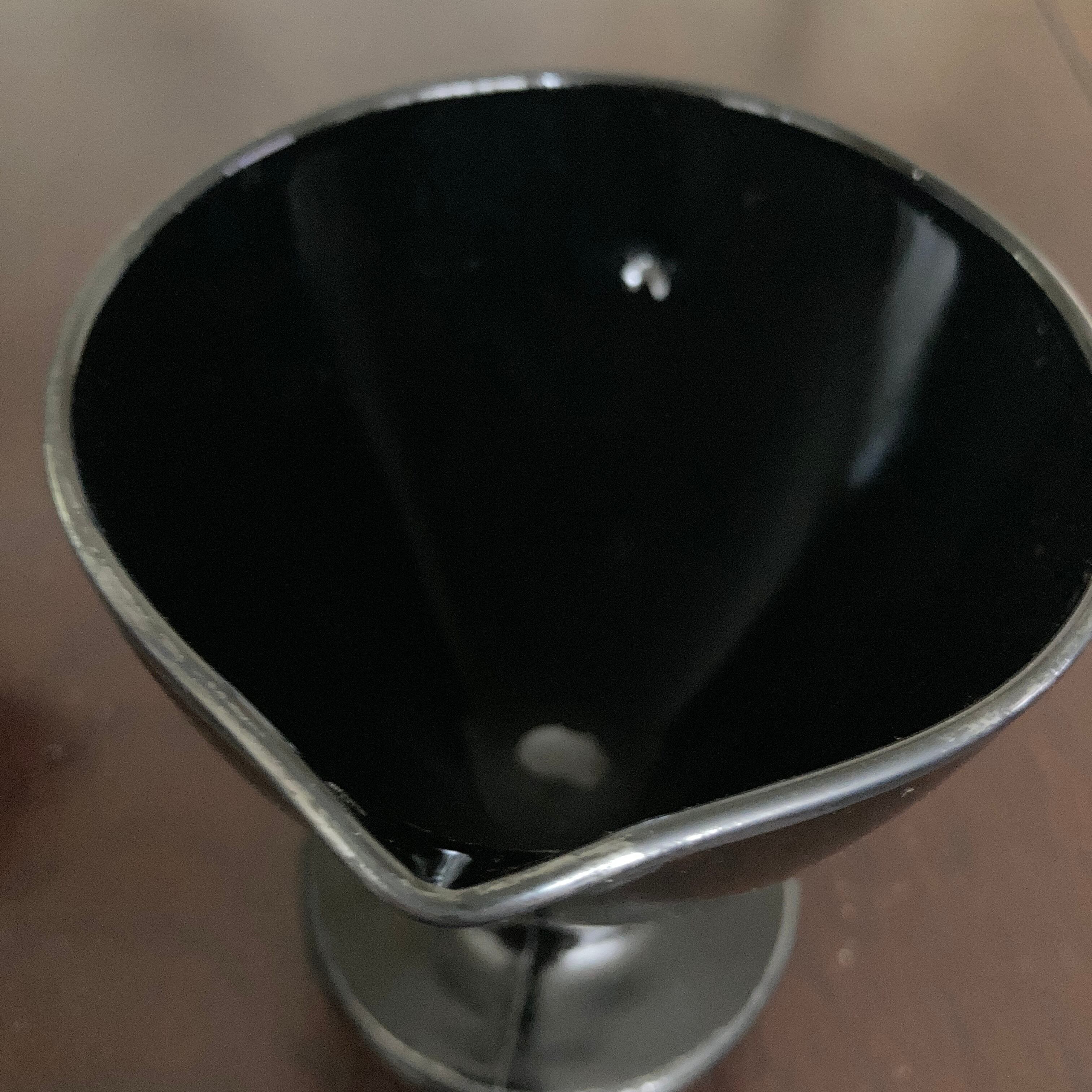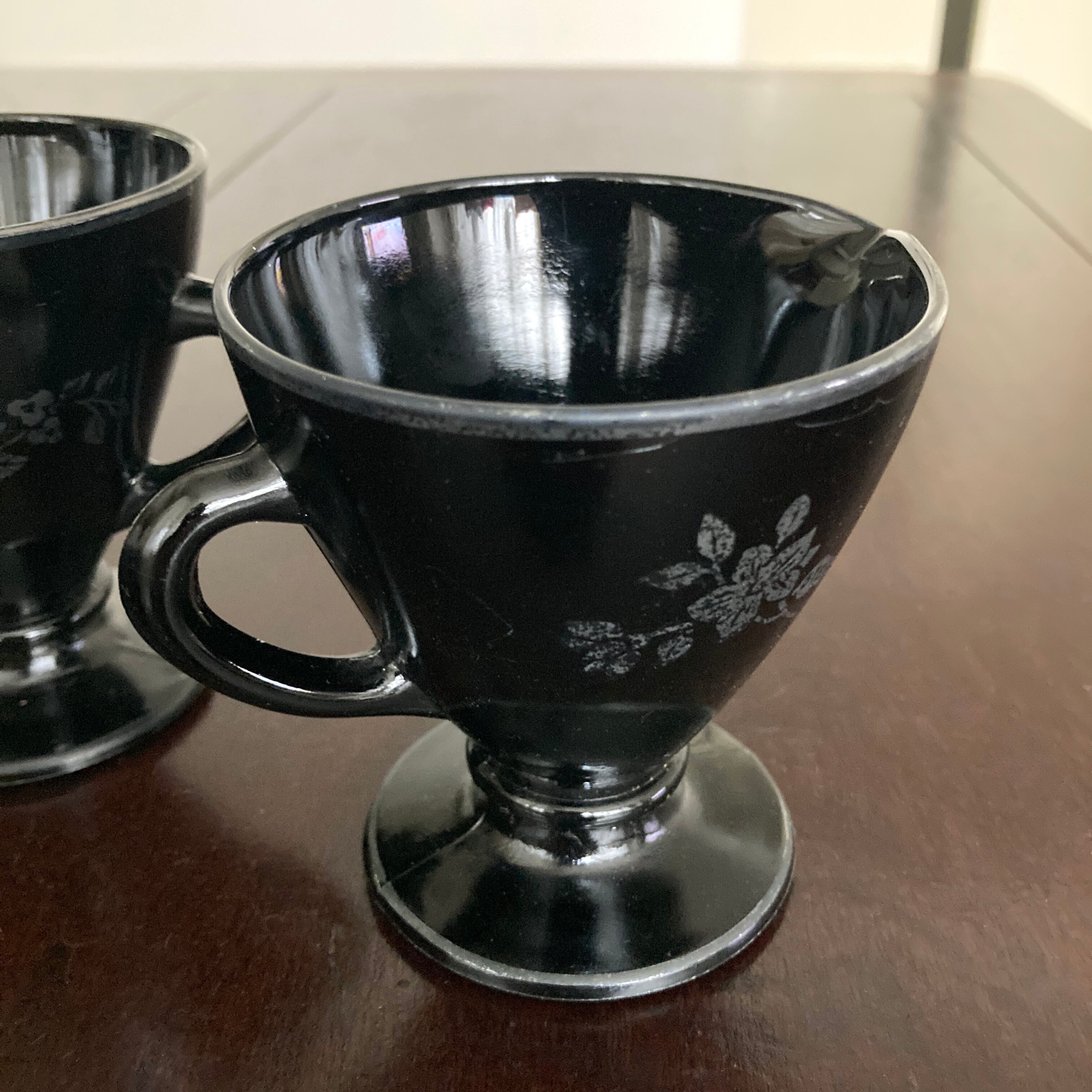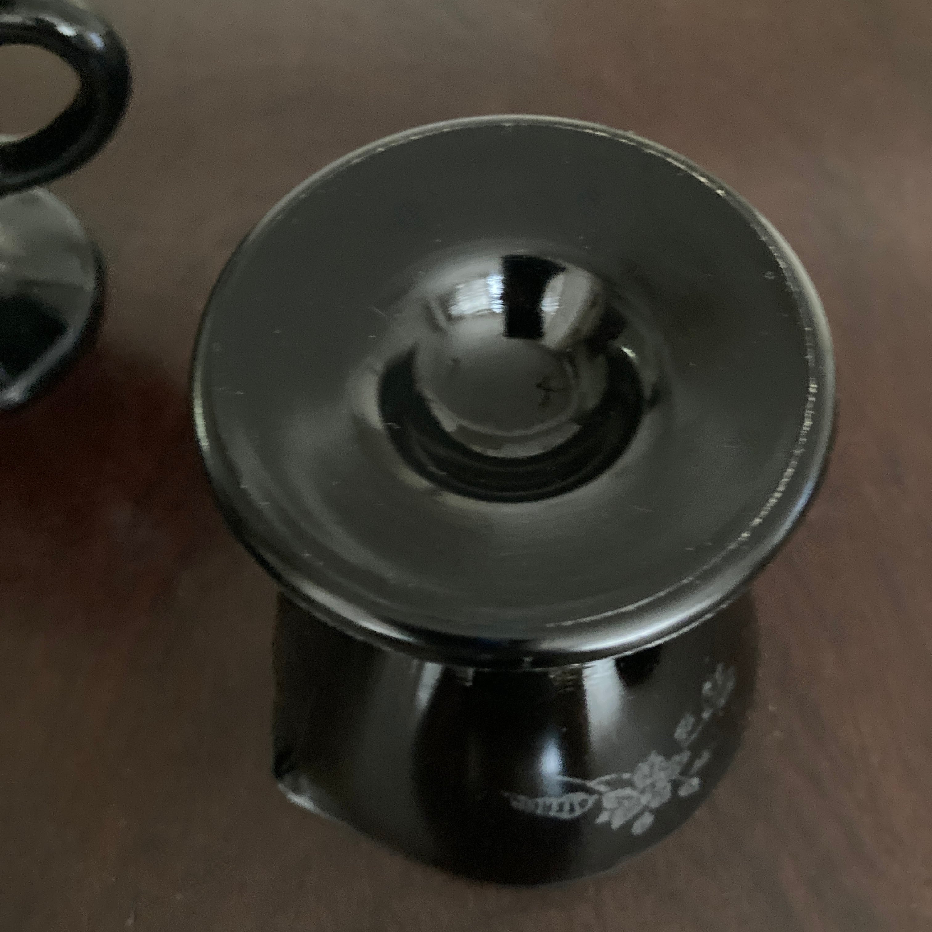 銀の花のプリントとふちの黒色がやや落ち、ふち付近に劣化線があります