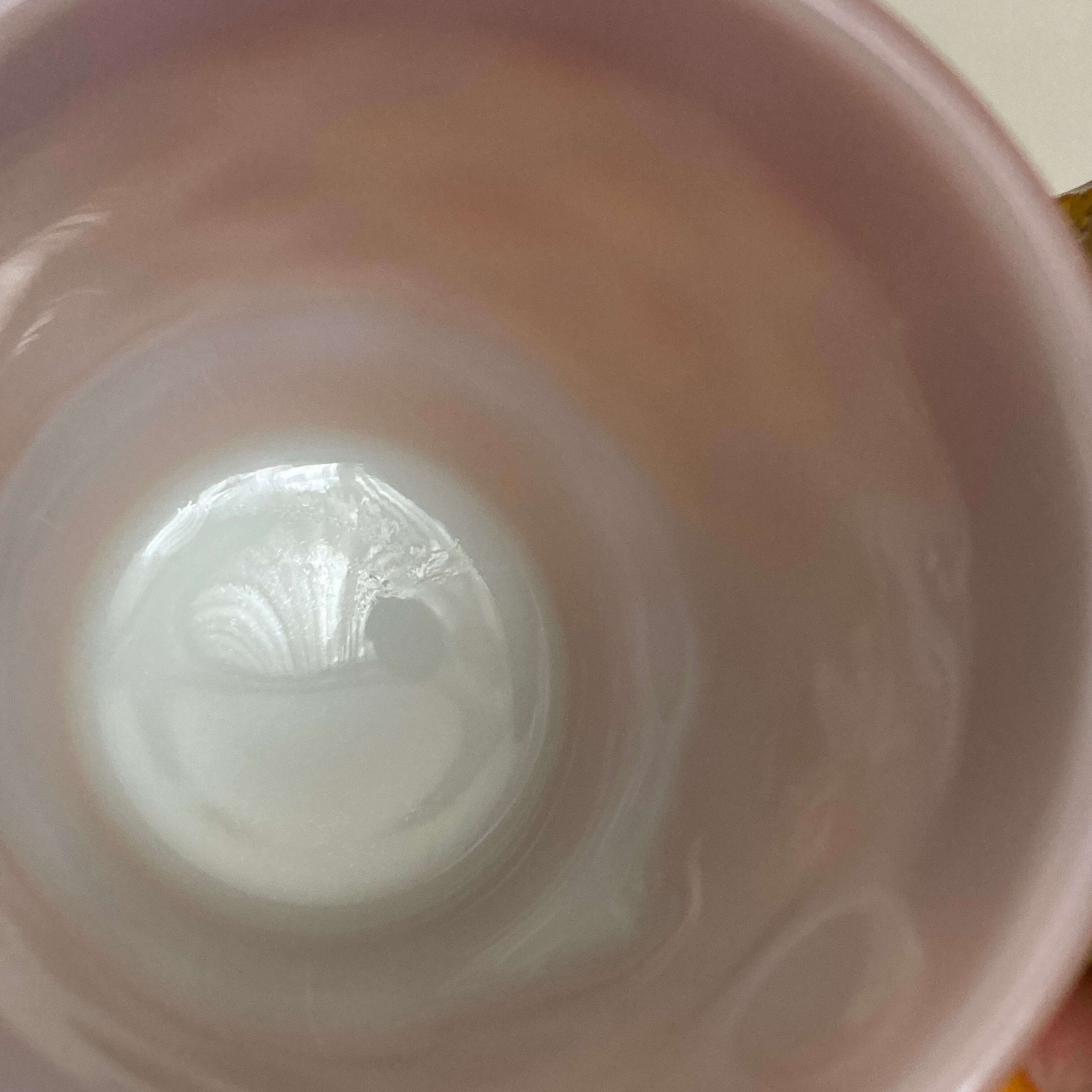 オレンジもほぼパーフェクトで大変よい状態です。裏底に1ミリ程度のカタツキがあり、飲み口付近の塗装が少し粗さがあるためAランクにしています。