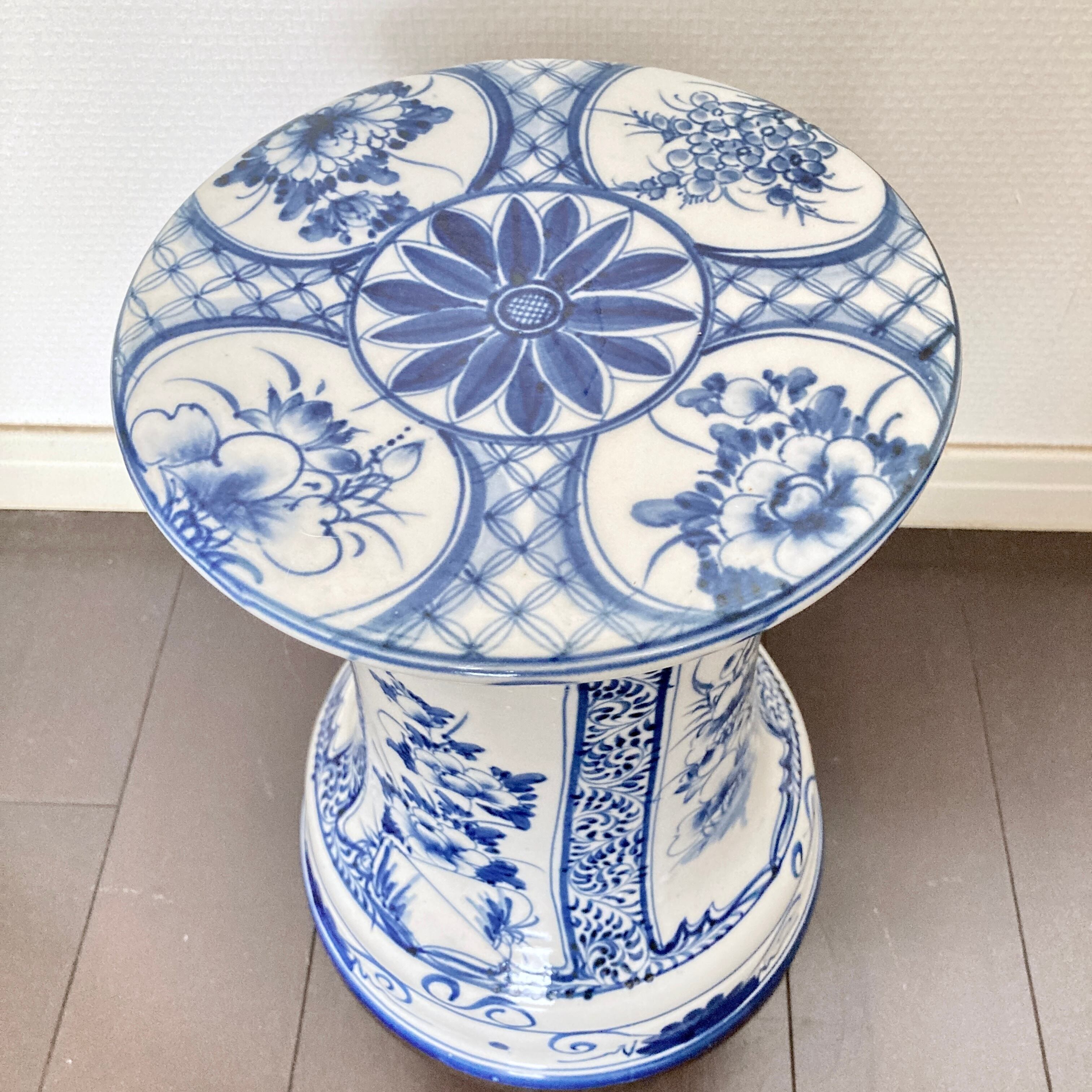 陶器製 盆栽台 花瓶台 飾り台 花瓶スタンド H31.5cm(中) スツール 青い花柄
