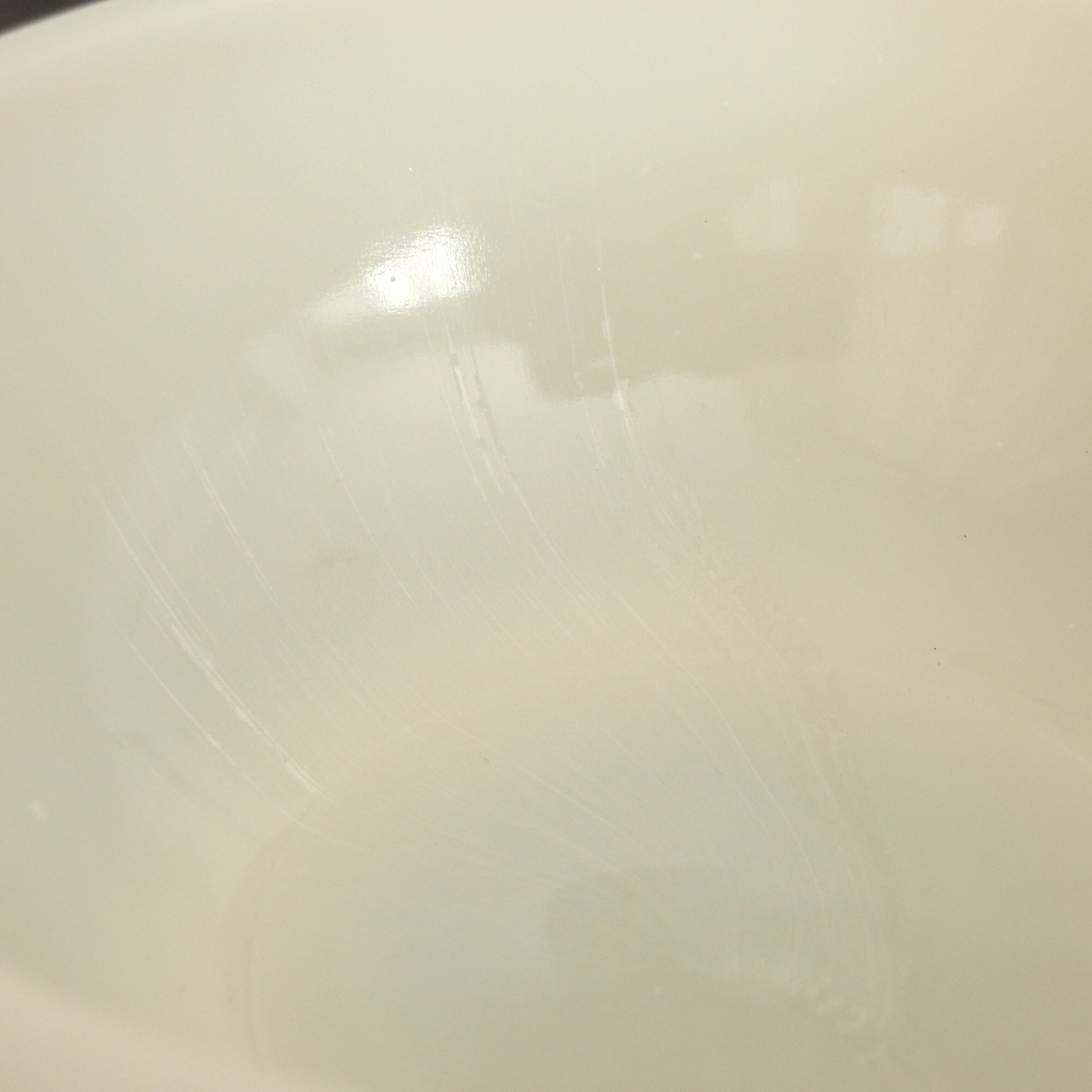 ひとつはホワイトラインが多めのため少し粗さがあります。当時のアイボリーはガラスの練りムラが多く標準的な現象になります。ボウル全体は大変キレイなコンディションです。