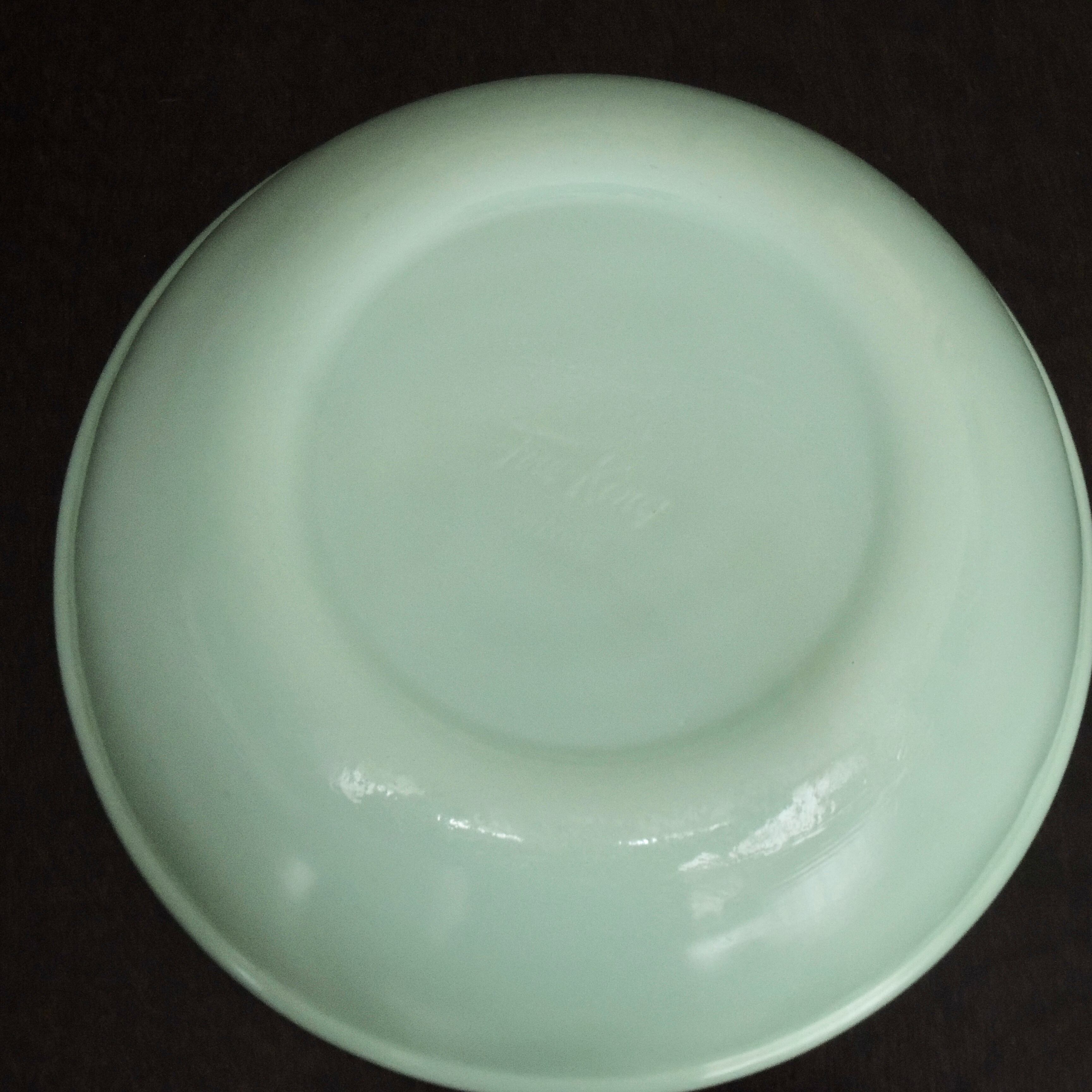 「ファイヤーキング」は1941~86年に米国アンカーホッキング社が製造したオーブン耐熱ガラス製食器のシリーズブランド名で、現在は生産されていません(他社製のライセンス品除く)。ぼってりとした形と「ミルクガラス」と呼ばれる色が特徴で、代表色は翡翠色をしたジェダイカラーです。