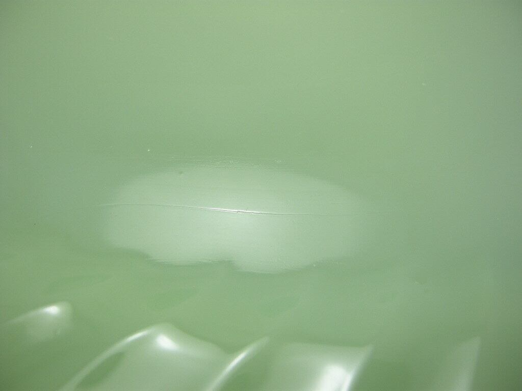 表面側の縁の一部にぼんやりとした小さな白い点(ホワイトスポット)があります。また、表面の一部にポツポツとした膨らみがあります。表面中央部分の一部にほんのわずかに擦れがある程度です。縁の側面の一部に、小さな黒い着色(製造時のステイン)が付着している箇所があります。使用感は感じられません。おそらく保存時についてしまったものかと思います。見た目にも気になるほどの状態ではないですよ!ツヤも最高ランクで、ツルツルピカピカ、とてもキレイなプラッターです。状態は画像にてご確認下さいね!
