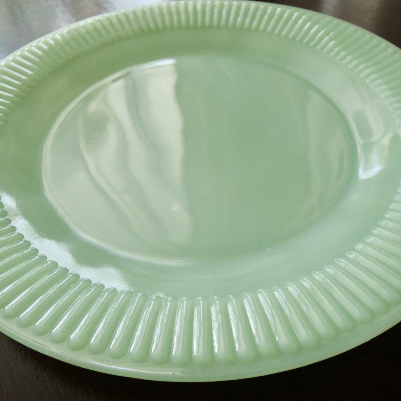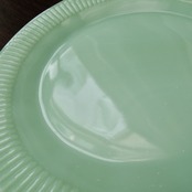 食器の縁から中心に向かって放射状に走る細かい縦リブ(ribbed)模様が特徴。ファイヤーキングの中では初期の頃から生産されたロングセラーシリーズです。